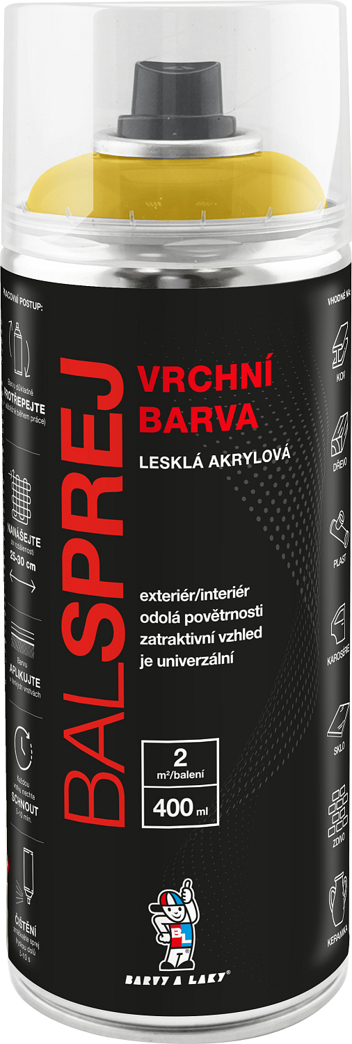 BALSPREJ ist eine universelle, glänzende Deckfarbe in Sprühdose verwendbar für Holz-, Metall- und Karosseriebeschichtungen sowie für einige Kunststoffe. Sie zeichnet sich durch hohe Ergiebigkeit aus, trocknet schnell und läuft nach dem Sprühen nicht ab. Sie ist witterungs- und korrosionsbeständig. Sie kann mit farbloser Acryl-Lackierung in Sprühdose überlackiert werden.