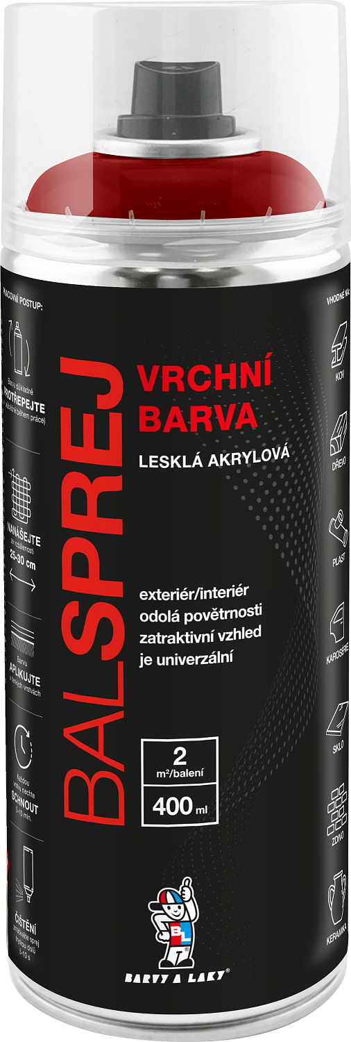 BALSPREJ ist eine universelle glänzende Oberflächenfarbe aus der Spraydose geeignet zum Streichen von Holz, Metall, Karosserien und einigen Kunststoffen. Sie zeichnet sich durch ihre Ergiebigkeit aus, ist schnelltrocknend und läuft nach dem Spritzen nicht herunter. Sie ist wetterbeständig und korrosionsbeständig. Sie kann mit farblosem Acryl-Spraylack überlackiert werden.