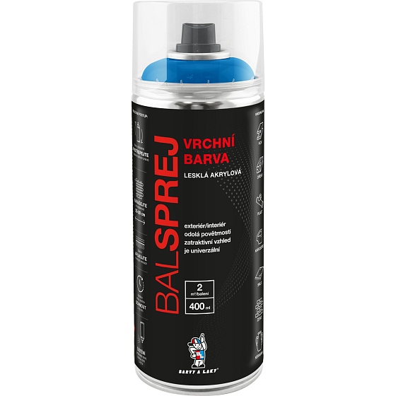 BALSPREJ ist eine universelle glänzende Deckfarbe in Sprayform verwendbar für Anstriche von Holz, Metall, Karosserien und einigen Kunststoffen. Sie zeichnet sich durch ihre Effizienz aus, ist schnelltrocknend und läuft nach dem Sprühen nicht ab. Sie ist gegen Witterungseinflüsse und Korrosion resistent. Sie kann mit einem farblosen Acryllack in Sprayform überlackiert werden.