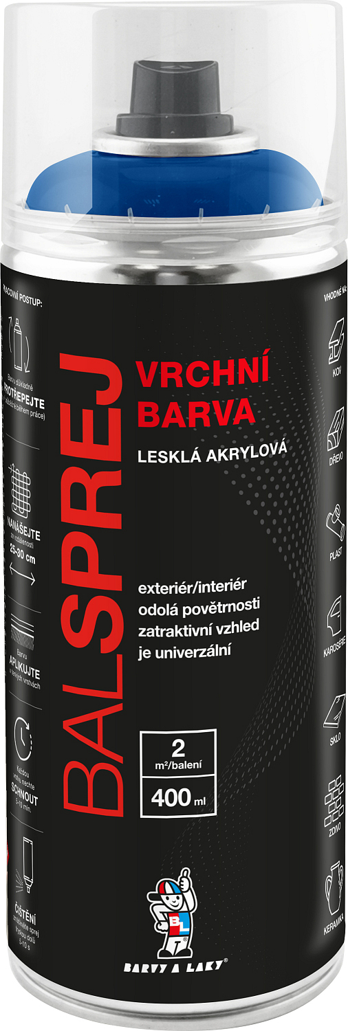 BALSPREJ ist eine universelle glänzende Oberflächenfarbe in Sprayform, die für Anstriche von Holz, Metall, Karosserien und einigen Kunststoffen verwendet werden kann. Sie zeichnet sich durch hohe Ergiebigkeit aus, trocknet schnell und läuft nach dem Sprühen nicht ab. Sie ist wetterbeständig und korrosionsbeständig. Sie kann mit einem transparenten Acryl-Lack in Sprayform überlackiert werden.
