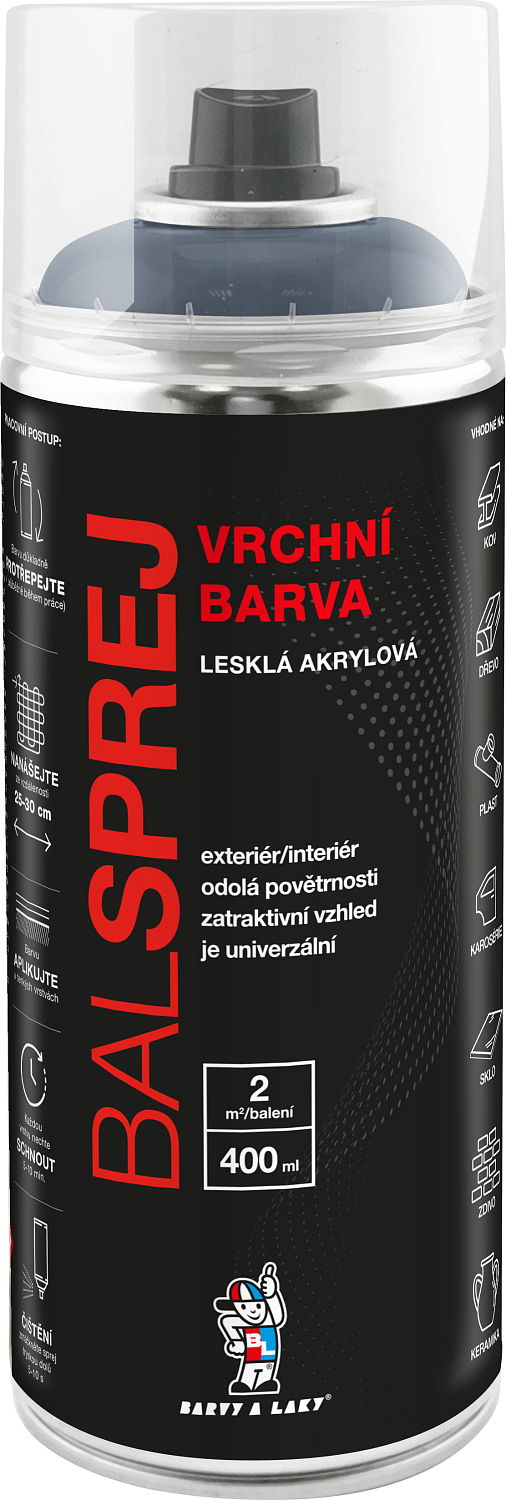 BALSPREJ ist eine universelle glänzende Oberflächenfarbe in Sprayform, die sich für Anstriche auf Holz, Metall, Karosserien und einigen Kunststoffen eignet. Sie zeichnet sich durch hohe Ergiebigkeit aus, trocknet schnell und läuft nach dem Sprühen nicht ab. Sie ist witterungsbeständig und korrosionsbeständig. Sie kann mit klarem Acryllack in Sprayform überarbeitet werden.