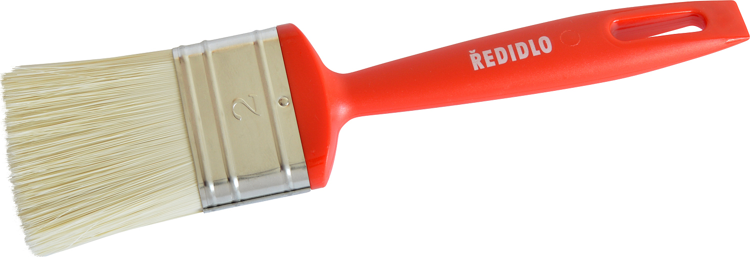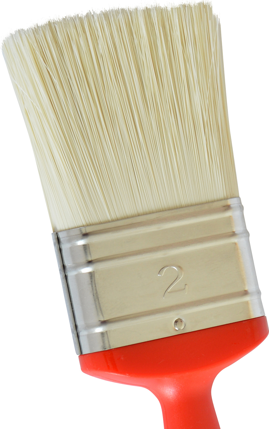 Der Kunststoffgriff ist im Verhältnis zum Pinselkopf gedreht, um eine bessere Handhabung zu ermöglichen, und das Ende des Griffes hat die Form eines Spachtels - Rakels, reine Borsten. Geeignet für alle Arten von Beschichtungsstoffen.