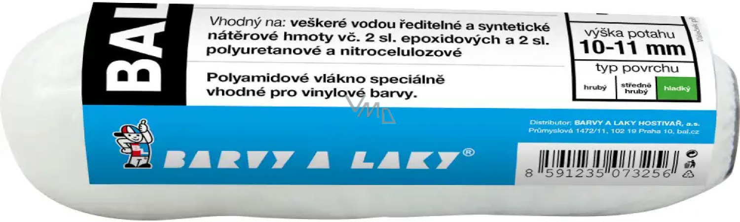 Barvy a Laky Hostivař bietet eine Rolle an, die sich für Malerarbeiten mit Vinyl-, Acryl- und Dispersionsfarben höherer Dichte eignet. Die Rolle hat einen kurzen Flor.