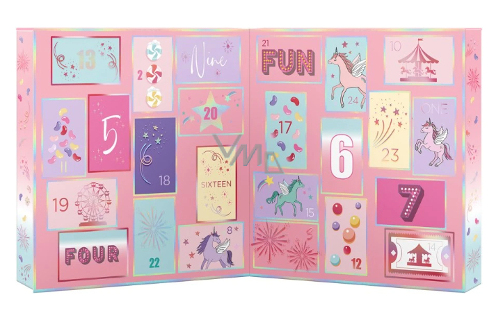 - baleno v nádherném papírovém adventním kalendáři s motivy jednorožců