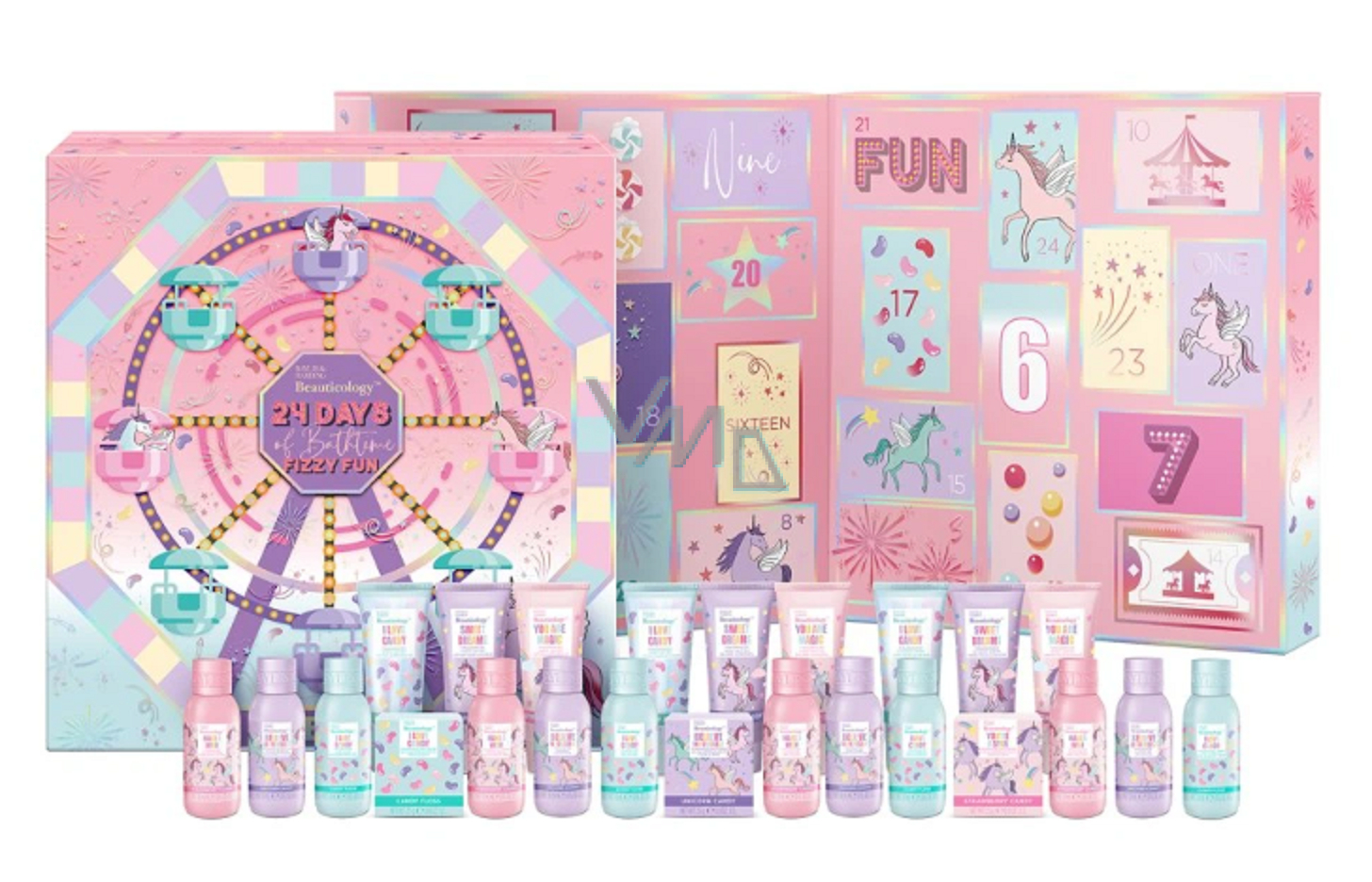 Zkraťte si čekání na Vánoce a vychutnejte si 24 luxusních pečujících mini kosmetických produktů v několika vůních z kolekce Beauticology. Vtáhnou Vás, děti i mladé slečny do prostředí cukrárny a zábavního parku. Jednorožci, vůně cukrovinek a pocit štěstí zahalí pokožku těla a dodají to správné kouzlo během rutinní péče o pokožku.