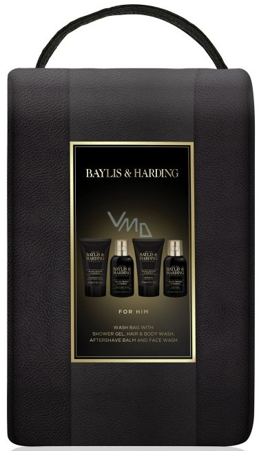 Baylis & Harding Černý pepř a Ženšen 2v1 šampon a sprchový gel 100 ml + pleťový mycí gel 100 ml + balzám po holení 50 ml + sprchový gel 50 ml + taška, kosmetická sada