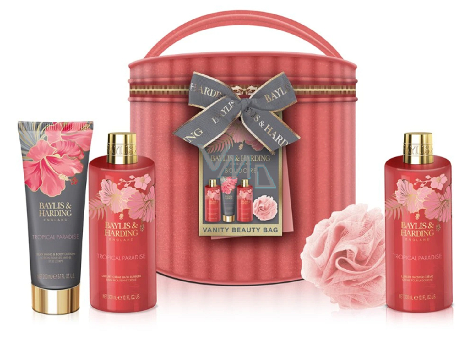 Baylis & Harding Boudoire Tropical Paradise Duschcreme 300 ml + Cremebad 300 ml + Körperlotion 200 ml + Körper-Schwamm, Kosmetikset für Frauen