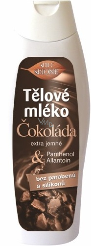 Mléko svým obsahem složek čokolády (kakao, lecitin, kakaové máslo) působí blahodárně na Vaši pokožku. Bioflavonoidní antioxidanty (epikatechin) z kakaa, které jsou až třikrát silnější než např. v zeleném čaji, účinně odstraňují volné kyslíkové radikály, které se podílejí na stárnutí pokožky. Kakaové a bambucké máslo pokožku promastí a zvláční. Mléko dále obsahuje významné aktivní látky jako panthenol, lecithin, allantoin, glycerin, tocopherol a bio minerály manganu, hořčíku a mědi. Mléko je středně tučné, rychle vstřebatelné s univerzálním použitím pro celou rodinu. Tělové mléko je vyrobeno jako extra lehký emulgel, rychle se vstřebává, je velmi jemné a nezanechá na pokožce mastný pocit. Žádný jiný přípravek nemá složení jako Bione – „čokoládové“ tělové mléko.