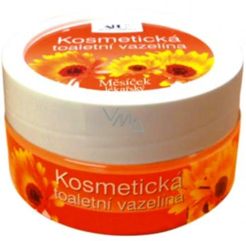 Kosmetická toaletní vazelína – měsíček lékařský macht die Haut geschmeidig, nährt und beruhigt rissige, trockene und verhärtete Haut. Geeignet für Hände, Füße usw. Sanft, ohne Emulgatoren und Konservierungsstoffe. Der Zusatz von Extrakt aus Calendula officinalis wirkt heilend, regenerierend und nährt die Haut.
