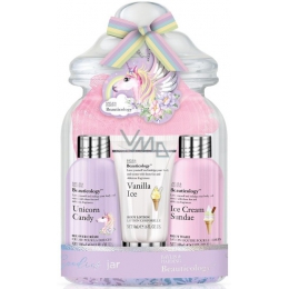 Obklopte svou mysl a hýčkejte tělo jedinečnou kolekcí s kouzel ným jednorožcem a duhou. Nezaměnitelná řada potěší Vaše smysly sladkou vůní zmrzlinového poháru, vanilkové zmrzliny, sladkého cukroví, mátového bonbonu či sušenek a krému.