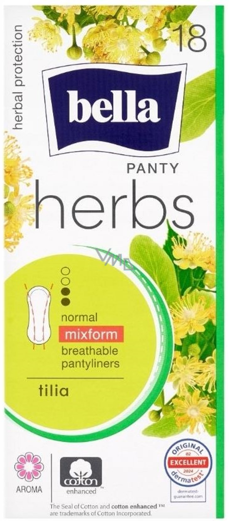 Dámské vložky Bella Herbs Tilia jsou prodyšné slipové vložky obohacené o výtažek z lípy, která pokožku zklidňuje, má protizánětlivé a antibakteriální účinky. Povrch vložky je z Netkaného materiálu, je jemný a měkký, má zvýšenou savost. Vložky jsou jemně aromatizované. Prodyšné slipové vložky s bočními křidélky jemně aromatizované.
