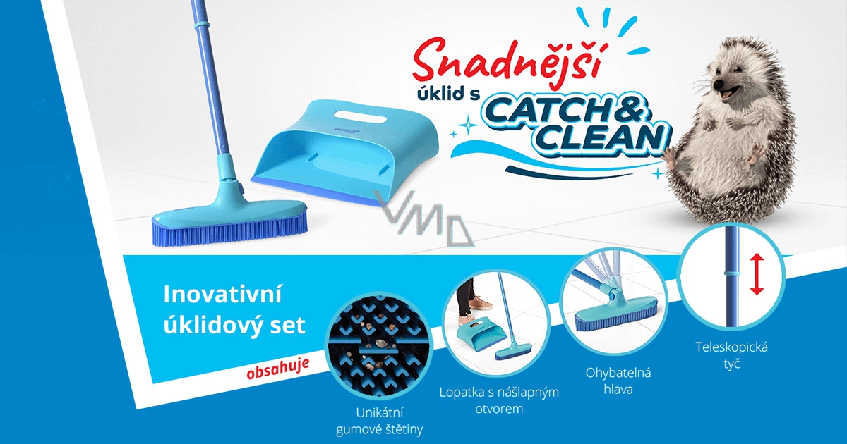 Chcete zametat snadno, účinně a bez bolavých zad? Máme pro vás novinku, která všechny tyto požadavky splní. Smeták má štětiny vyrobené z gumového měkčeného materiálu, které jsou ve tvaru V a jsou ploché, proto je zametání 2x účinnější. Zbavíte se malých prachových částic, větších nečistot, rozlitých tekutin, ale i vlasů a zvířecích chlupů. Použít lze na všechny typy podlah i na koberce. Vaše záda ušetří výsuvná teleskopická tyč, kterou lze natáhnout až do délky 140 cm a lopatka s nášlapným otvorem, ke které se nemusíte ohýbat, stačí pouze zastrčit nohu do otvoru. Flexibilní hlavice je ohybatelná do čtyř úhlů, tak se snáze dostanete do hůře dostupných míst. Tento kompaktní set snadno uskladníte a navíc – všechny části jsou omyvatelné!