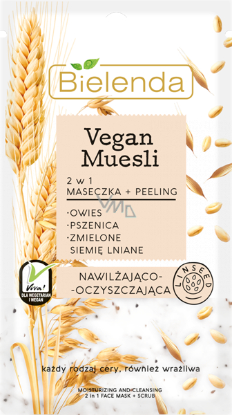 Bielenda Vegan Muesli Weizen + Hafer + Leinsamen 2in1 Feuchtigkeitsmaske und Peeling 8 g