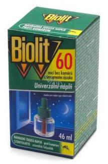 Náhradní tekutá náplň je určena pro elektrický odpařovač BIolit. Insekticid chrání proti komárům včetně těch tygřích i při mírně otevřených oknech a rozsvícených světlech. Ochrání místnost do 30 m3. Nepřetržitá ochrana bez Parfemace.