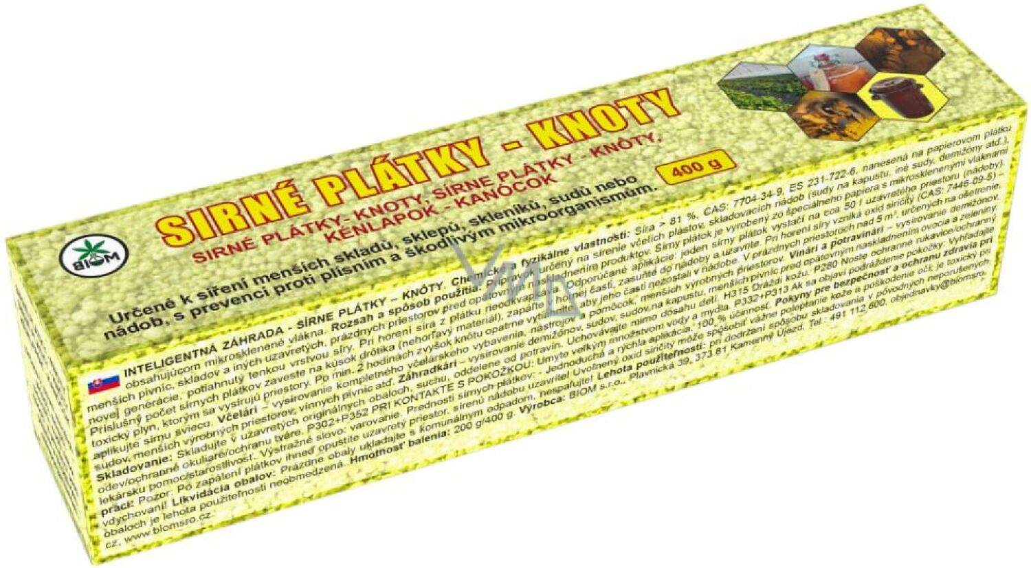Sirné knoty k dezinfekci skladových prostor a nádob. Určené k síření menších skladů, sklepů, skleníků, sudů nebo nádob, s prevencí proti plísním a škodlivým mikroorganismům.