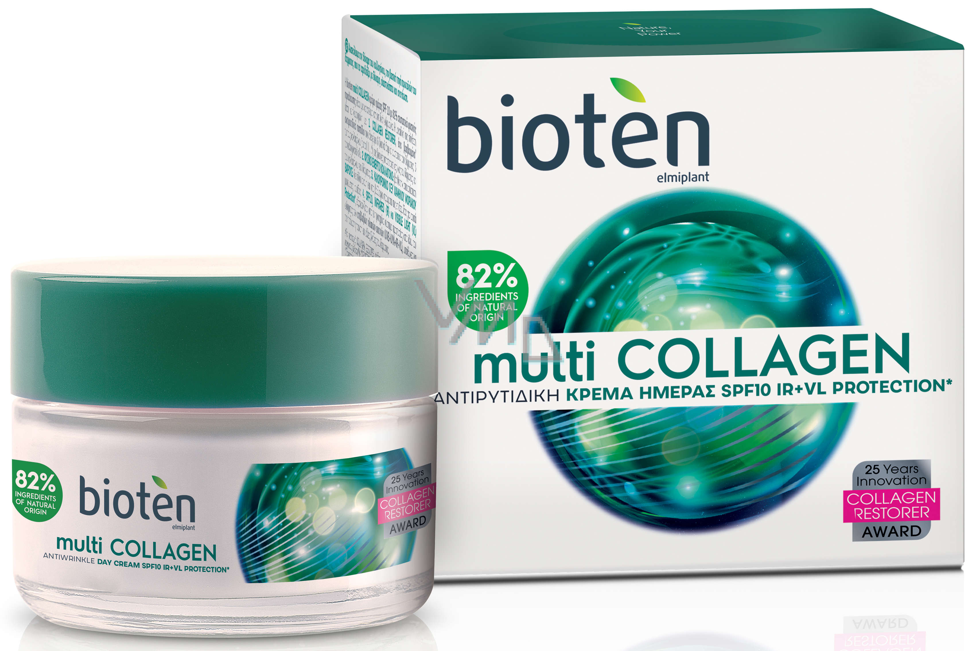 Bioten denní krém Multi Collagen OF 10 s 82 % ingrediencí přírodního původu je průlomovým přípravkem proti vráskám, který obsahuje: Collagen Restorer, oceněný protivráskový peptid, který stimuluje 6 nezbytných složek kůže. Aktivní přírodní kolagen, který pomáhá obnovit kolagen ve škáře. Také kyselinu hyaluronovou s nízkou molekulární hmotností, která proniká do nejhlubších vrstev pokožky, kde redukuje vrásky.