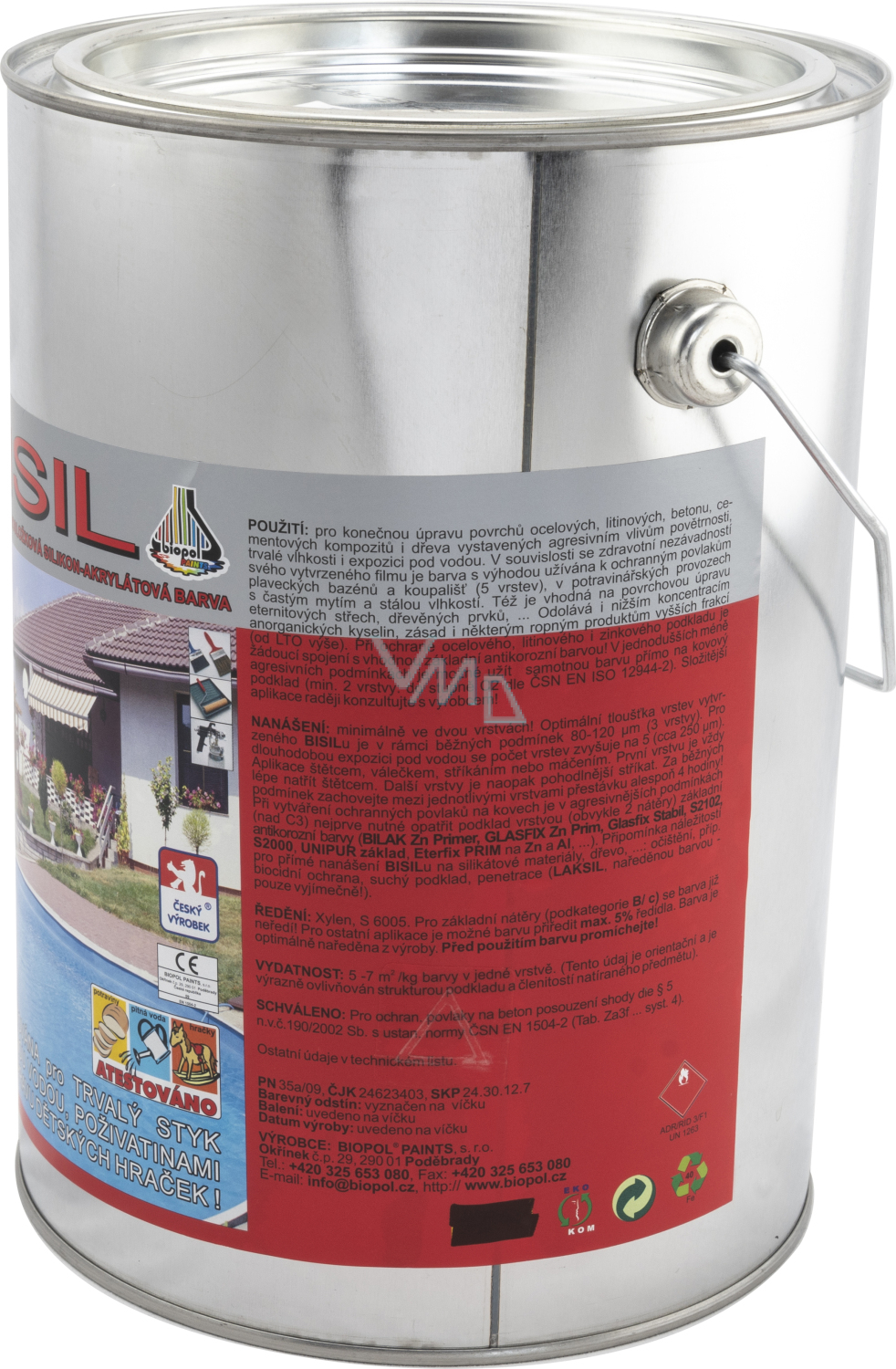 - Barva se nanáší minimálně ve dvou vrstvách. Optimální tloušťka vrstev samotného vytvrzeného Bisilu je v rámci běžných podmínek 80-120 um (3 vrstvy).
