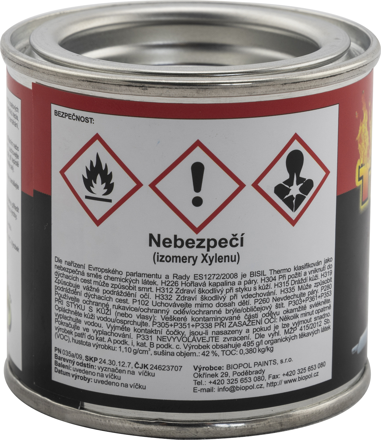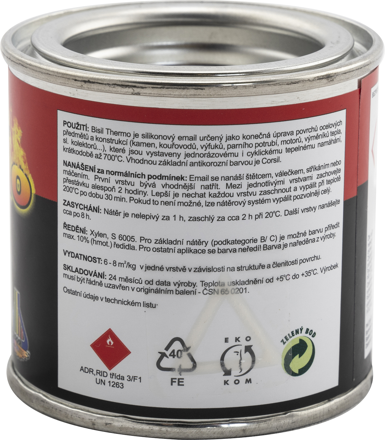 Die Farbe ist für die Endbehandlung von Stahl- und Gusseisenoberflächen und -konstruktionen gedacht, die einmaliger oder zyklischer thermischer Belastung ausgesetzt sind. Die Farbe wird auf Basis hochwertiger Silikonharze unter Verwendung moderner anorganischer Spinellpigmente formuliert, die auch bei Temperaturen um 700 °C nicht degradieren.