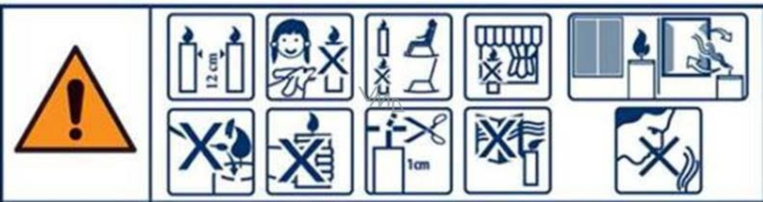 Nikdy nenechávejte hořící svíčky bez dozoru! Nenechávejte hořící svíčku v dosahu dětí a domácích zvířat o samotě. Ujistěte se prosím, že vždy svíčky hoří ve vzdálenosti 10 cm od sebe a že nad svíčkami je dostatek prostoru na teplo, které vydává plamen. Ujistěte se prosím, že svíce jsou dostatečně vzdáleny od lehce zápalných předmětů.