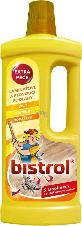 Přípravek pro snadnou údržbu laminátových a plovoucích podlah. Bistrol na laminátové a plovoucí podlahy na povrchu nezanechává stopy, rychle schne a neklouže. Ekologické složení zajišťuje výborný čisticí účinek. Přidané lešticí vosky dodají podlaze nádherný lesk, jako by byla zbrusu nová.