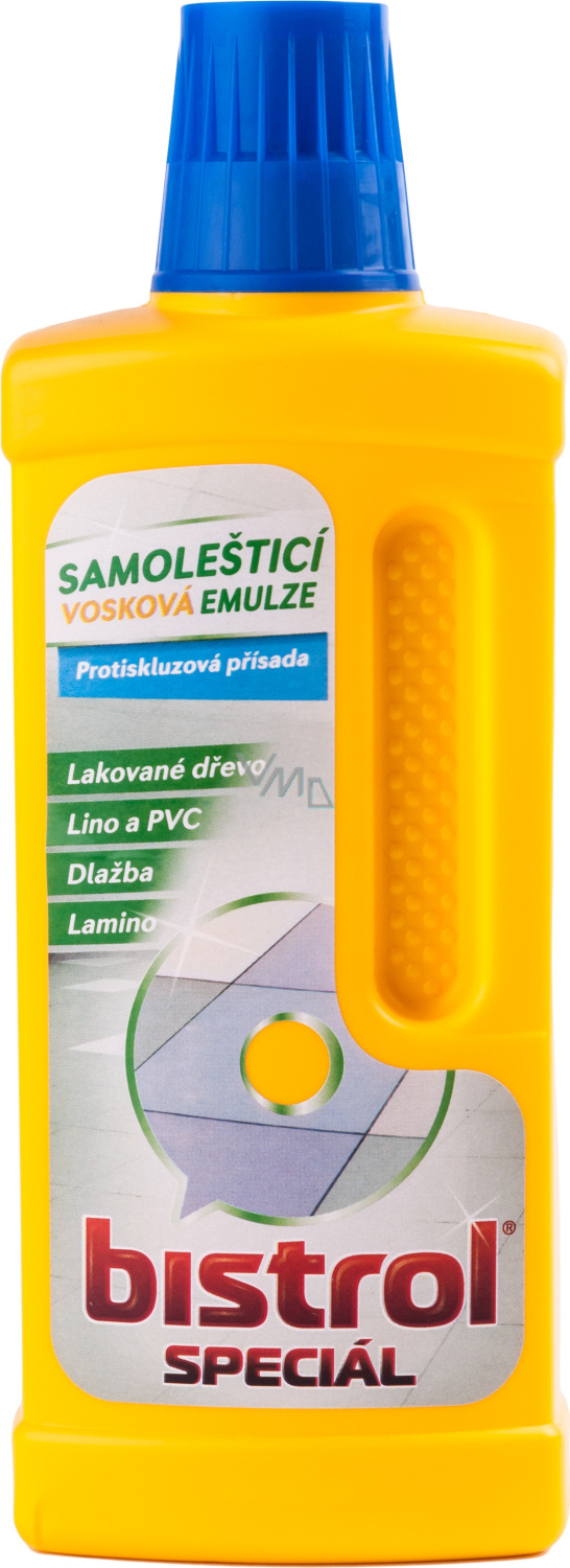 Bistrol Speciál se používá k leštění a konzervaci nesavých podlahových krytin (guma, PVC, linoleum, dlaždice).