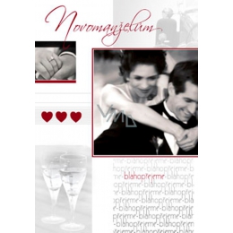 Novomanželům blahopřejeme. Na Vaší společné cestě životem hodně lásky chceme teď přát, ať je Váš život báječná pohoda a je vždy čemu spolu se smát.