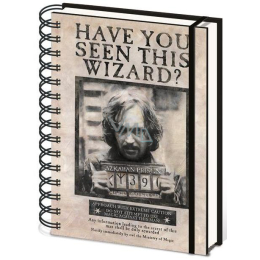 Zápisník s hledaným Siriusem Blackem z příběhů o Harry Potterovi bude skvělým a užitečným společníkem pro všechny fanoušky! Zápisník je linkovaný, v kroužkové vazbě a zavírá se pomocí elastické gumičky.