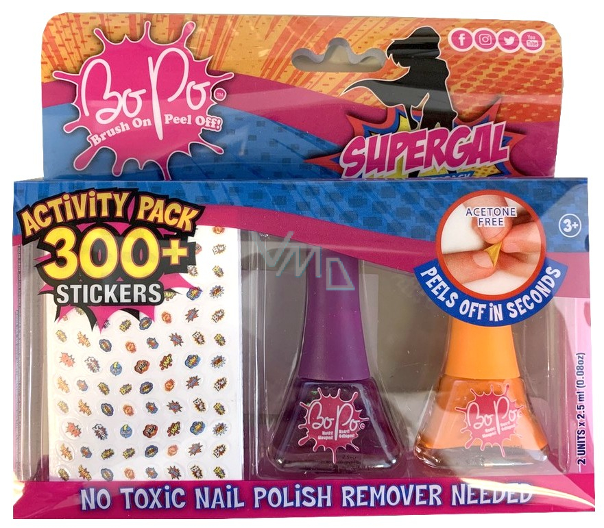 Bo-Po Supergal Peeling Nagellack lila 2,5 ml + Peeling Nagellack orange 2,5 ml + Nagelsticker, Kosmetikset für Kinder