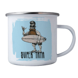 Dekorační plecháček s potiskem pro tatínka - super táta. Průměr plechového hrnku 8 cm. Originální smaltový hrnek pro super tatínka. Tiskneme sublimační technologií na bílé plechové hrnky se stříbrným okrajem. Plecháčky jsou balené v bílé krabičce, vydrží mytí horkou vodou, nedoporučujeme mytí v myčce.