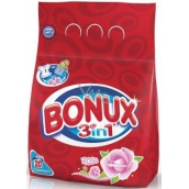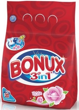 Prací prášek Bonux 3v1 Rose dodává vašemu prádlu dlouhotrvající svěžest, která vydrží až 8 hodin. Není vhodný pro vlnu a hedvábí.