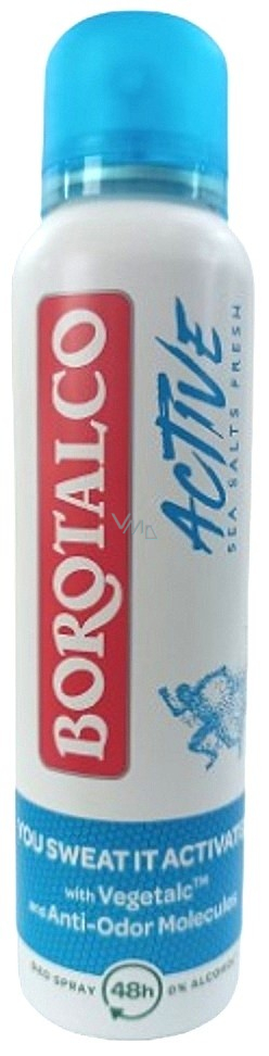 Zajistěte si perfektní ochranu před pocením s deodorantem Active Sea Salt Fresh Deo Spray od italského výrobce Borotalco. Deodorant ve spreji s vůní mořské soli je navržený speciálně pro milovníky sportu a aktivní jedince. Vyniká inovativní technologií mikrokapslí Odor-Converter, které se aktivují v době zvýšeného pohybu a v době pocení. Čím více se hýbete, tím více vůně se uvolňuje. Deodorant poskytuje dlouhotrvající 48hodinovou ochranu před pocením a nepříjemným zápachem. Užijte si příjemný pocit svěžesti a komfortu. Deodorant Borotalco Active Sea Salt Fresh Deo Spray neobsahuje alkohol a byl Dermatologicky testován.