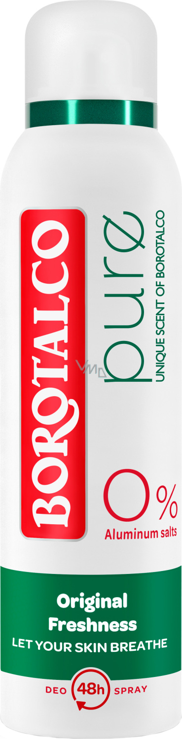 Borotalco Pure Original sprej Vás chrání před zápachem a potem během náročných dní, či sportu. Tento deodorant je určen jak pro muže, tak i ženy. Neobsahuje hliník a je vhodný pro všechny typy pokožky.