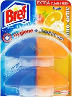Udržet toaletu voňavou a čistou dá někdy velkou námahu. Navíc drhnutí WC mísy nebývá zrovna tou nejoblíbenější činností. Nyní je zde řešení v podobě nového vylepšeného WC bloku Bref Duo-Aktiv EXTRA Clean & Fresh. S jeho pomocí už nebude těžké udržet toaletu zářivě čistou a fantasticky svěží. Bref Duo-Aktiv EXTRA Clean & Fresh nyní recepturu opravdového WC čističe a obsahuje ještě více čisticích složek a svěžího parfému. Výsledkem je dokonalá kombinace hygienické čistoty a fantastické svěžesti. Vybírat můžete ze široké škály vůní.