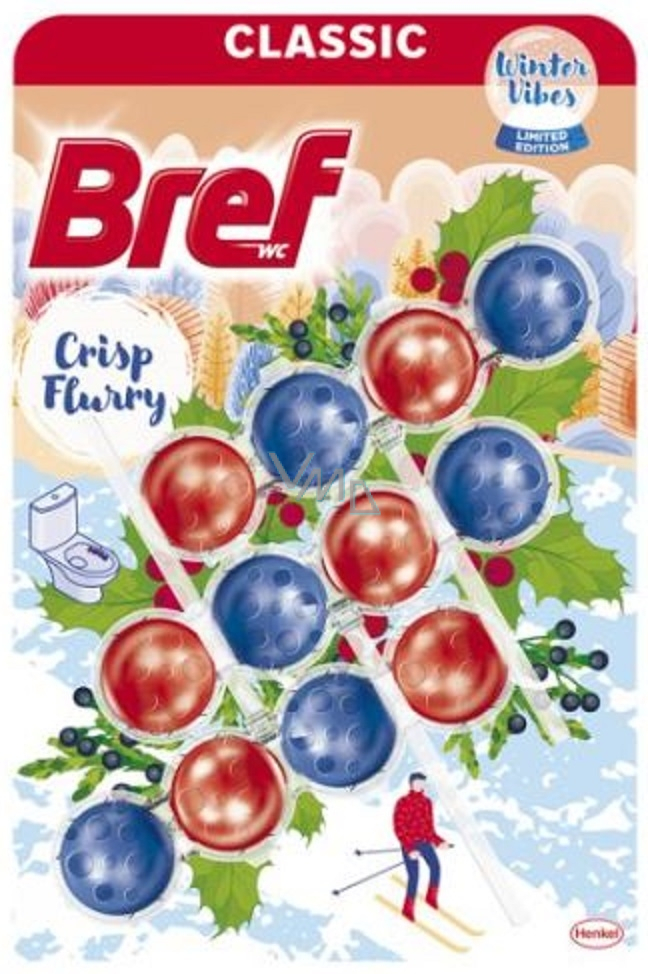 Bref Classic Crisp Flurry WC-Block für hygienische Sauberkeit und Frische Ihrer Toilette, färbt Wasser, Mega-Pack limitierte Auflage 3 x 50 g