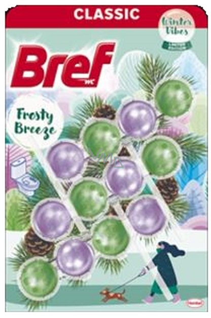 Bref WC blok Aktiv Freosty Breeze - Mrazivý vánek, obsahuje pečlivě vybrané, povzbuzující, harmonizující a relaxační esenciální oleje, které vytvářejí příjemnou atmosféru. Složení WC bloku disponuje 4 základními funkcemi: příjemná vůně, aktivní čisticí pěna, účinek proti vodnímu kameni a ochrana před nečistotami. Zažijte dlouhotrvající požitek z vůně s WC blokem od značky Bref, který uvolňuje intenzivní vůni při každém spláchnutí až po dobu 30 dnů.