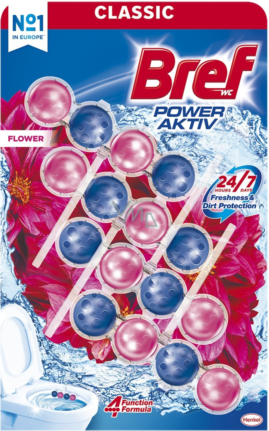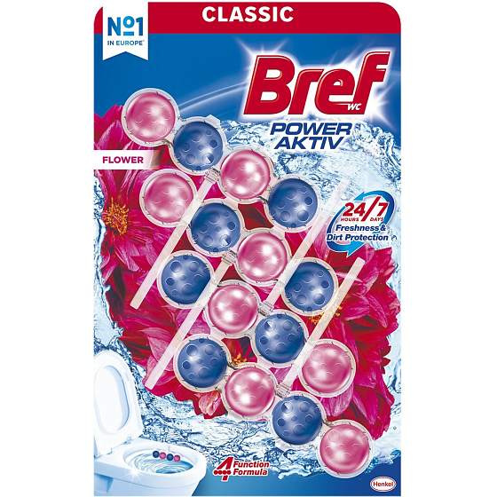 Bref Power Aktiv ist ein effektiver fester WC Block, der bei jeder Spülung 4 Funktionen übernimmt - hygienische Sauberkeit, Schutz vor Kalk, langanhaltende Frische und die Erzeugung eines reichhaltigen Reinigungsschaums für die Weiße und den Glanz der Toilette. Bref Power Aktiv hat zudem eine moderne und praktische Form - der Korb mit Kugeln ist ausreichend lang und deckt somit einen größeren Teil der WC-Schüssel ab.