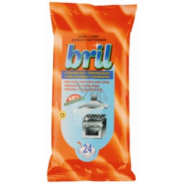 BRIL odmašťující utěrky velice snadno odstraní běžnou mastnotu v kuchyni – digestoře, pracovní plochy, obklady apod. Zanechávají svěží citrónovou vůni. Jsou napuštěné speciálním roztokem, který je silný vůči špíně, ale k povrchu je velmi šetrný.