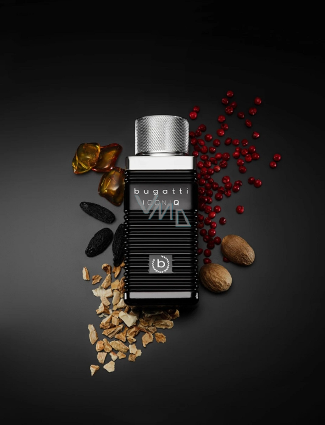 Ponořte se do světa vůně bugatti Iconiq Black, která patří do rodiny dřevito-ambrových a pikantních parfémů. Pánská toaletní voda bugatti Iconiq Black se v úvodu představuje s pikantní intenzitou černého kardamomu, ohnivým akcentem růžového pepře a svěží jiskrou bergamotu. Srdce vůně odkrývá kouřové tóny muškátového oříšku, teplé cedrové dřevo, smyslnou jemnost santalového dřeva a aromatickou svěžest levandule. Základní nota staví na mužské eleganci, s teplými tóny ambry, sladkou plností tonkových bobů a zemitými nuancemi kosatce.