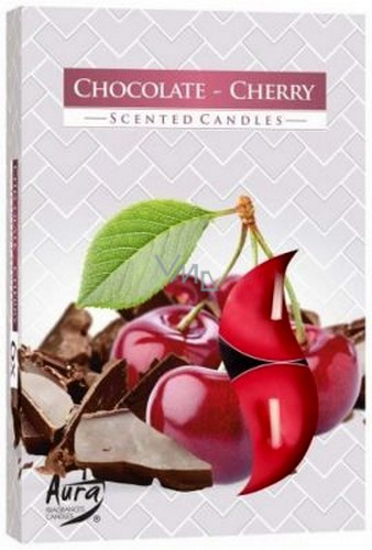 Bispol Aura Schokoladenkirsche - Duftkerzen mit Schokoladen- und Kirschenduft 6 Stück