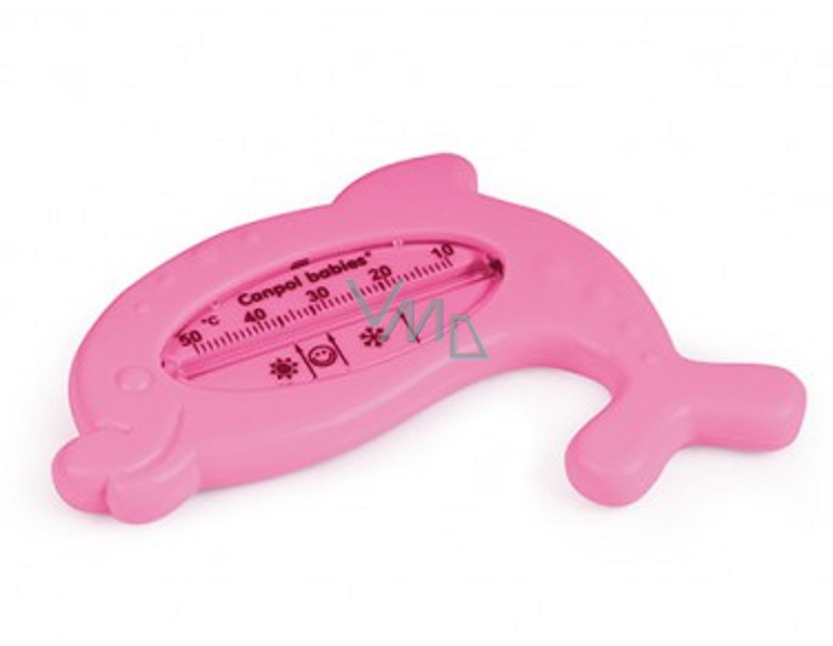 Přesný, spolehlivý teploměr ve tvaru delfína ke kontrole teploty vody připravované koupací lázně s dobře čitelnou stupnicí.