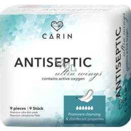 Die Carin Antiseptic Ultra Wings sind ultra dünne menstruelle Binden, die aktiven Sauerstoff enthalten. Dieser desinfiziert die Binde schonend und reduziert unangenehme Gerüche. Sie haben hervorragende absorbierende Eigenschaften. Die Carin Antiseptic Binden sind für den regelmäßigen Gebrauch bestimmt.