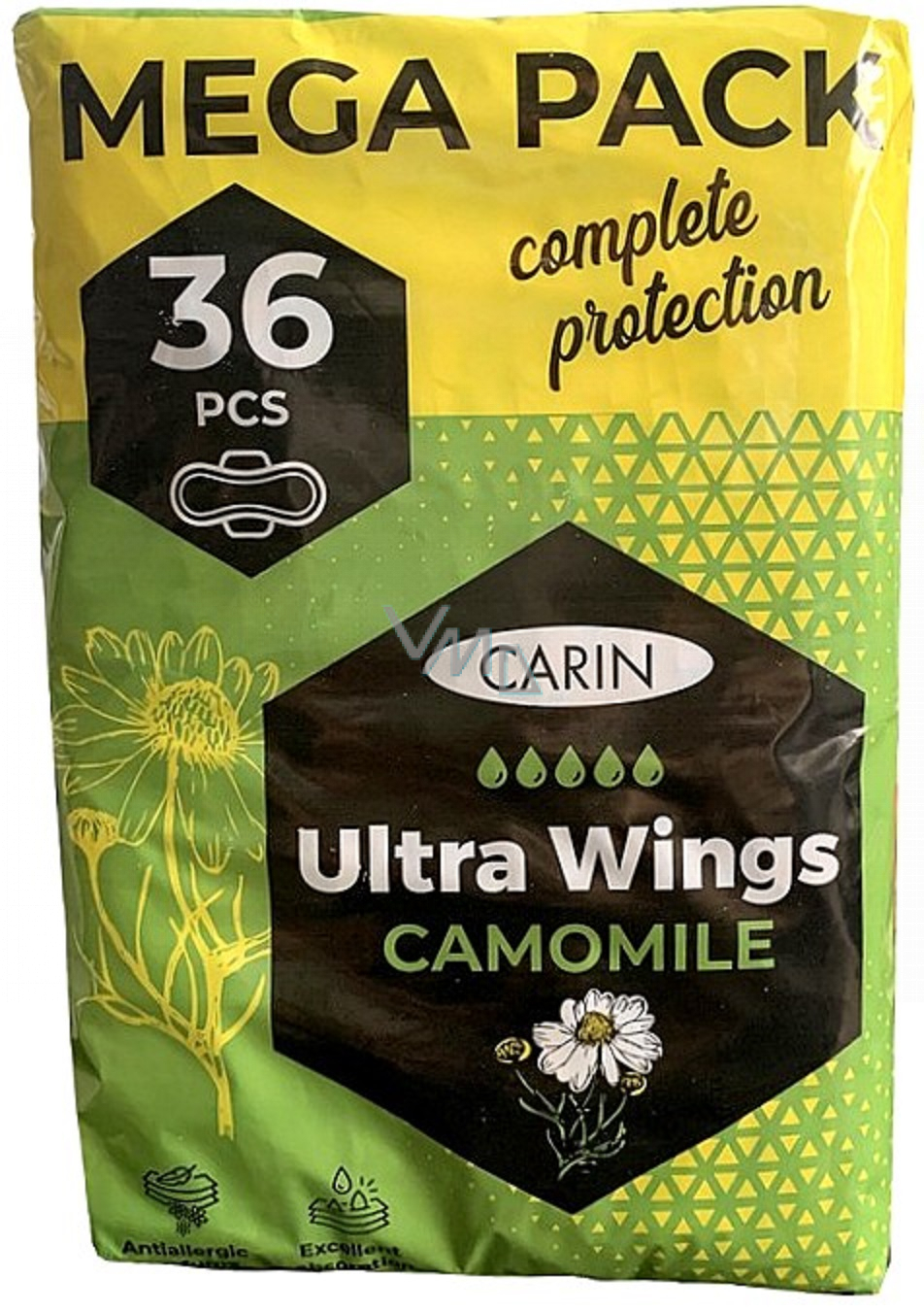 Ultra tenké jednotlivě balené vložky s křidélky se svěží vůní heřmánku, který dodá dokonalý pocit čistoty. Boční křidélka chrání vaše prádlo a zabezpečují vložku proti nežádoucímu pohybu. Vynikají vysokou absorpční schopností. Zajišťuje dokonalý pocit sucha a bezpečí. Pro pocit bezpečí, pohodlí a ochrany 365 dní v roce.