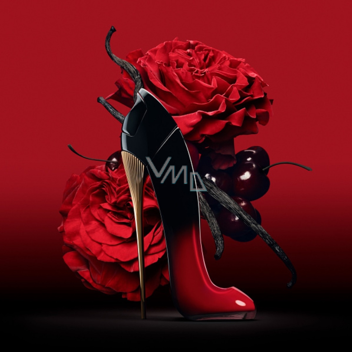 Der Flakon in Form eines High Heels wechselt von leidenschaftlichem Rot zu geheimnisvollem Schwarz, was den kontrastreichen Charakter des Duftes perfekt symbolisiert. Zu Beginn werden Sie von einem Ausbruch saftiger Schwarzkirsche und bitterer Mandeln verzaubert, der sanft in ein opulentes blumiges Herz mit Tuberose und süchtig machendem Rosenwasser übergeht. Die Basis des Duftes bilden wärmende Vanille und zartes Kakao, die dem Parfüm Sinnlichkeit und Tiefe verleihen.
