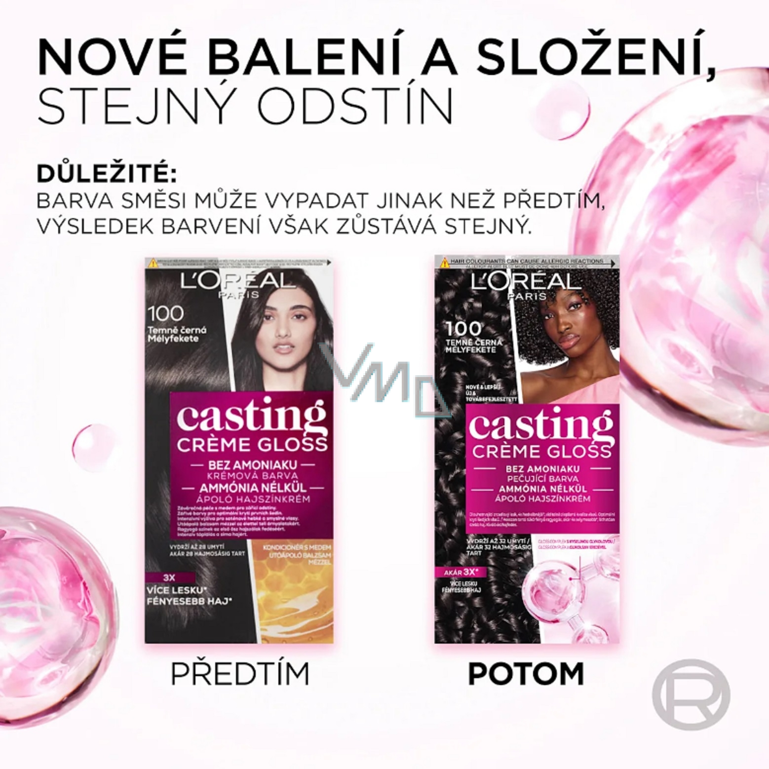 Loreal Paris Barva na vlasy Casting Crème Gloss vám nabízí optimální překrytí šedivých vlasů s výrazně zářivými odlesky. Vytvoří ve vašich vlasech třpytivou barvu se zářivými a viditelnými odlesky pro velmi přirozený výsledek, který vydrží. Složení obohacené o mateří kašičku zanechává vlasy až 4x lesklejší. Přeliv je vhodný pro všechny typy vlasů - barvené, přirozené i melírované.