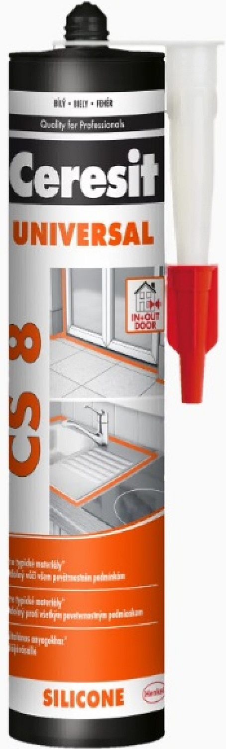 CERESIT CS 8 Universal ist ein einkomponentiger acetoxysilikon Dichtstoff , der für ein breites Anwendungsspektrum im Innen- und Außenbereich entwickelt wurde. Er härtet mit Luftfeuchtigkeit aus und bildet eine dauerhaft elastische, wasserfeste Verbindung mit hoher Haftung an verschiedenen Materialien, wie Glas, Keramikfliesen, glasierte und lackierte Oberflächen, Emaille oder eloxiertes Aluminium, ohne dass eine Grundierung erforderlich ist.