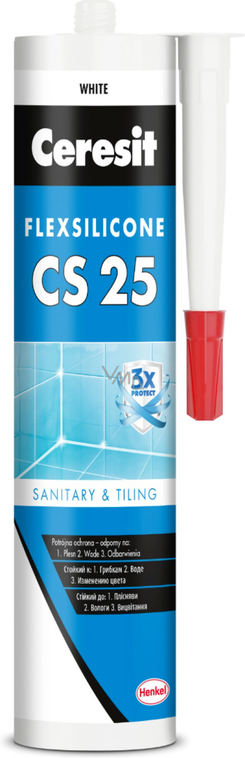 Der Sanitärsilicon Ceresit CS 25 ist zur Füllung von Dehnungs- und Verbindungsspalt zwischen keramischen Fliesen und Belägen in Ecken oder im Kontakt von Wänden, Böden und zur Montage von Sanitäranlagen in Sanitärbereichen vorgesehen. Er ist zur Füllung von Fugen dort gedacht, wo herkömmliche Fugenmörtel Risse und Risse aufweisen. Dank seiner dauerhaften Elastizität und Wasserbeständigkeit ist er geeignet für Bereiche, die dauerhaft feucht sind, wie z. B.: Küchen, Duschen, Badezimmer, Toiletten, Balkone, Terrassen usw.