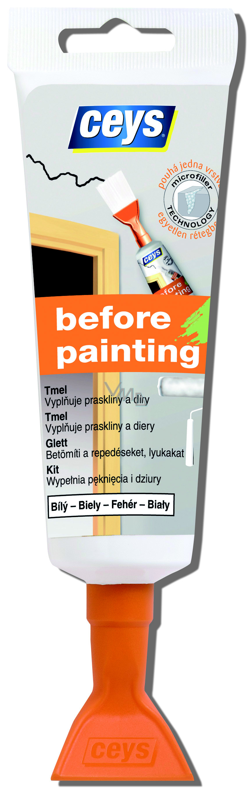 Before Painting je akrylátový tmel určený pro vyplněníprasklin, děr a nerovností ve zdi. Umožňuje velice jednoduše uhladit a připravit zeď k následnému malování. Má speciální složení, které se nesmršťuje, čímž stačí pouze jedna vrstva. Nedrolí se a rychle schne. Pro odstranění trhlin před malováním.