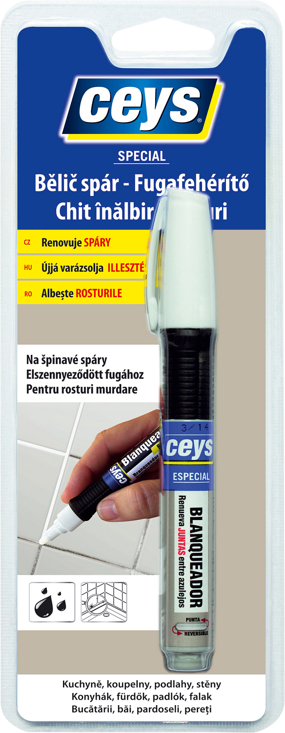 Der Fugenweißer revitalisiert die Fugen zwischen Fliesen in der Küche und im Badezimmer sowie im Fußboden. Er enthält spezielle antibakterielle Wirkstoffe, die der Schimmelbildung entgegenwirken. Der Fugenweißer ist mit einem rutschfesten Griff und einer beidseitigen Spitze ausgestattet, die die Lebensdauer seiner Verwendung verlängert. Der Fugenweißer verfügt über einen rutschfesten Griff und eine drehbare Spitze, die die Anwendung erleichtert und seine Kapazität erhöht (bis zu 50 laufende Meter).