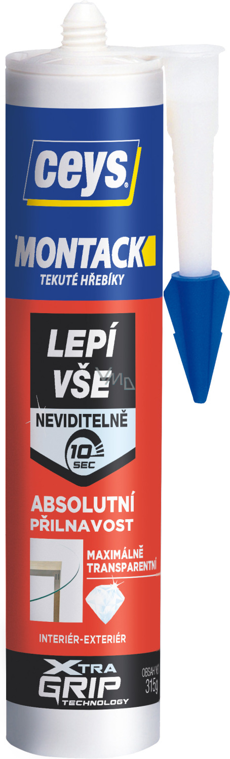 Montážní lepidlo Ceys Montack s absolutní přilnavostí pro odolné a snadné připevnění. Maximální všestranné použití na VŠECHNY materiály: porézní i neporézní včetně jemných a vlhkých povrchů. Speciálně určené pro transparentní materiály vyžadující čisté provedení.