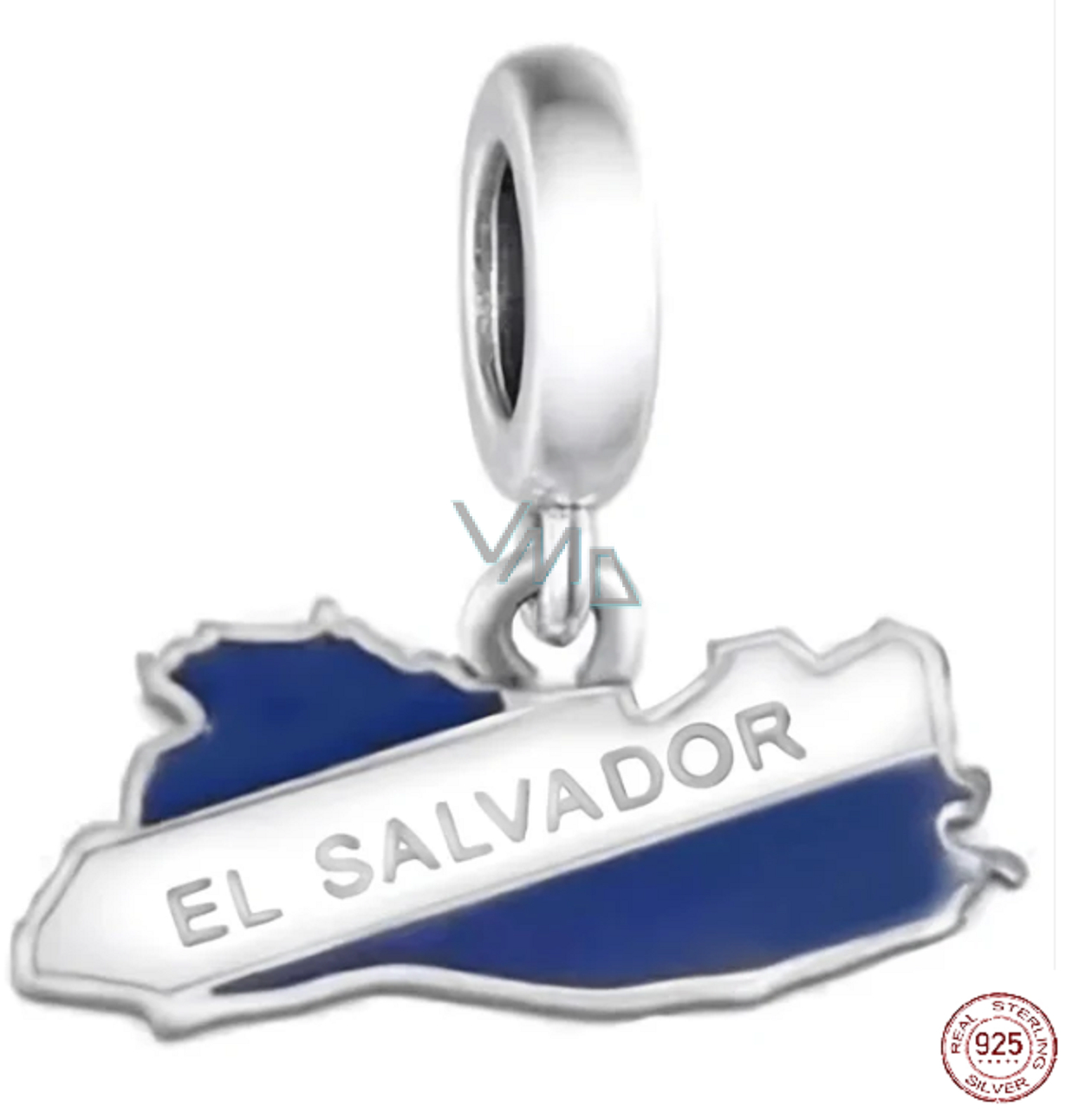 Charm Sterlingsilber 925 El Salvador Flagge - schwingende Karte, Anhänger für Reise-Armband